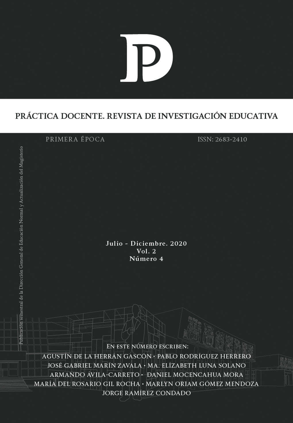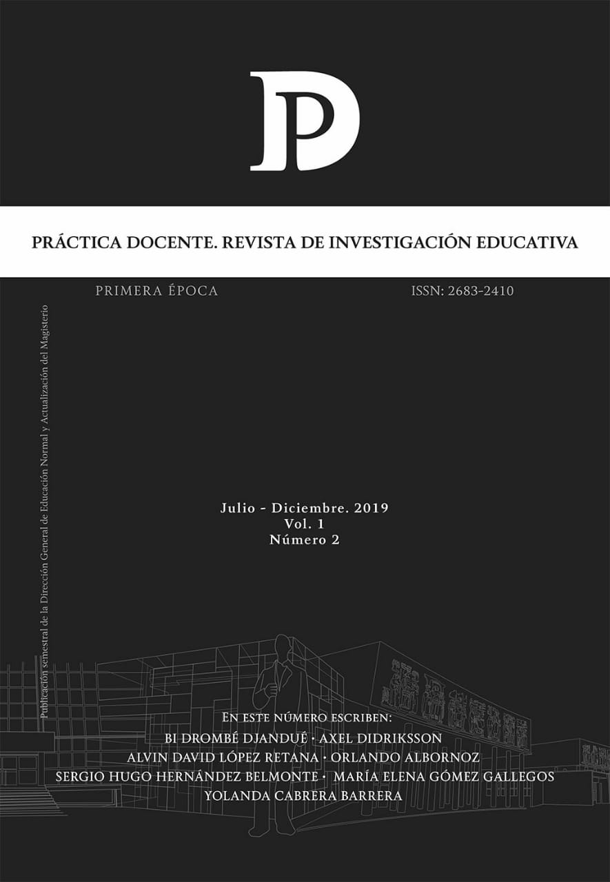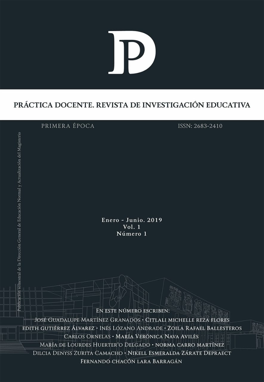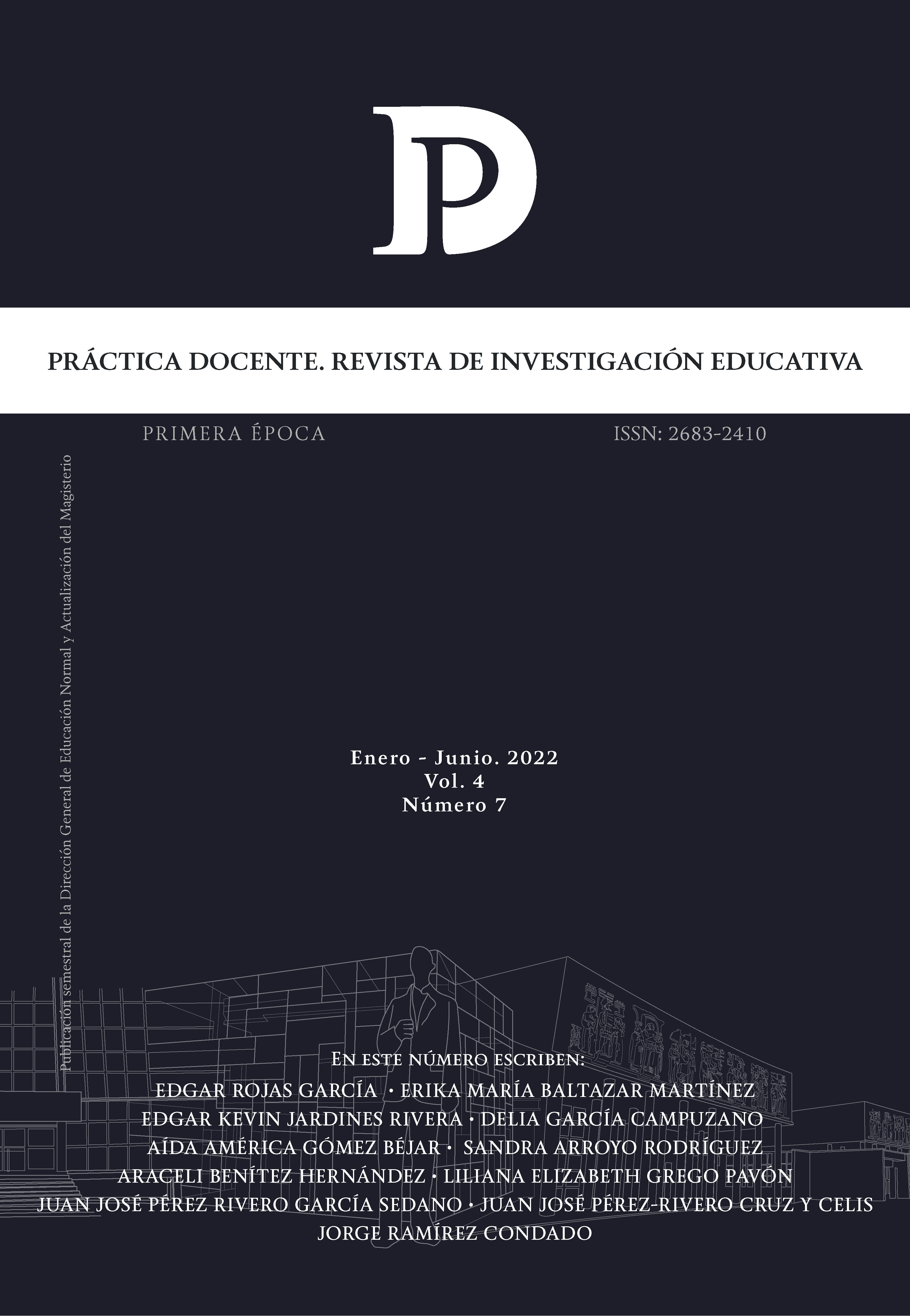 Práctica Docente. Revista de Investigación Educativa es editada por la Dirección General de Educación Normal y Actualización del Magisterio de la Autoridad Educativa Federal en la Ciudad de México, Secretaría de Educación Pública, México, calle Fresno 15, Col. Santa María la Ribera, Alcaldía Cuauhtémoc, C.P.06400, Tel. (55)36018400, Ext. 44519, URL: https://practicadocenterevistadeinvestigacion@aefcm.gob.mx. Editor responsable: A. Manuel Rodríguez Martínez. Reserva de Derechos al Uso Exclusivo núm. 04-2018-113011042500-203, registro ISSN 2683-2410 ,otorgados por el Instituto Nacional del Derecho de Autor.